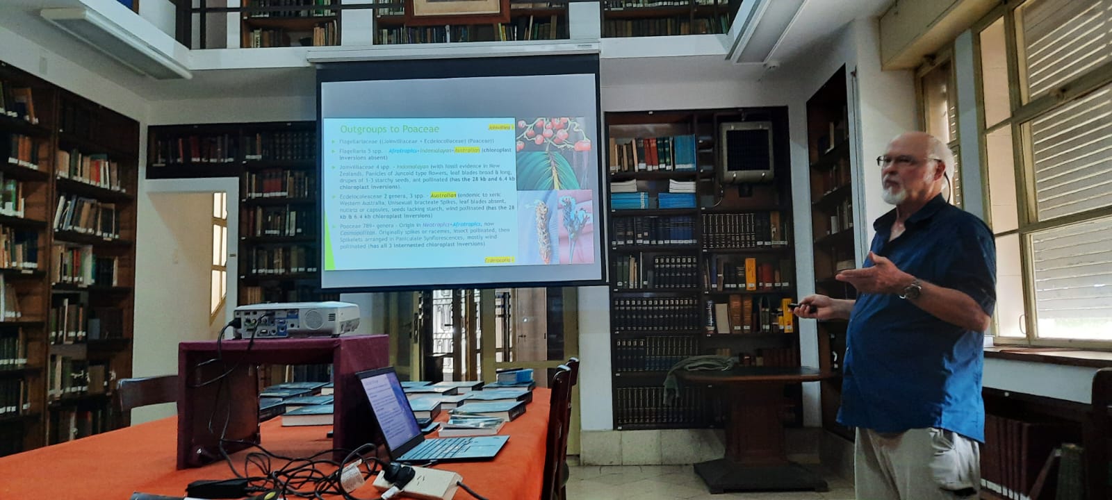 El destacado agrostólogo Robert Soreng del Smithsonian Institute (Washington, Estados Unidos) brindó una conferencia en el Instituto de Botánica Darwinion titulada Filogenia y biogeografía de la familia de los pastos (Poaceae). Su charla se centró en los últimos cambios nomenclaturales realizados en la familia, su origen, evolución y nuevos desafíos.